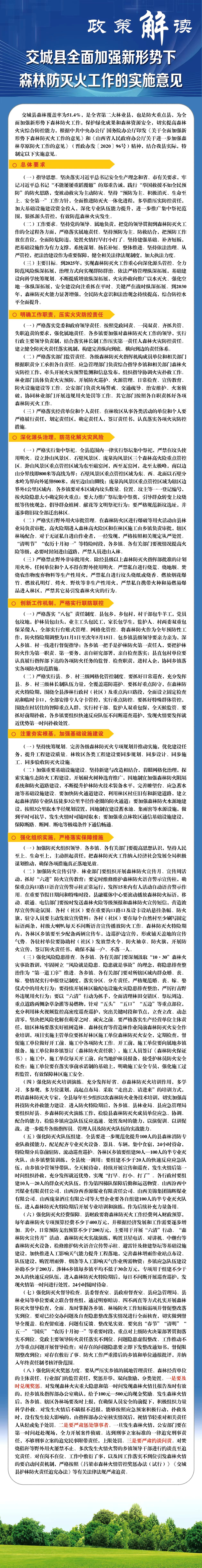 相關(guān)文件:關(guān)于印發(fā)交城縣全面加強(qiáng)新形勢下森林防滅火工作的實(shí)施意見的通知